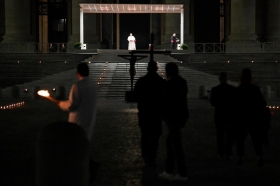 Emaús: «Olhos impedidos» escritos sob folha branca. Logo diluídos em aguarela, como quem passa a ver. Talvez, apenas, por não ser esse o final do texto; por não poder ser este o fim da história. Depressa esses olhos se dissolvem na tinta aguada, e transmutam-se numa súplica: «Fica connosco».