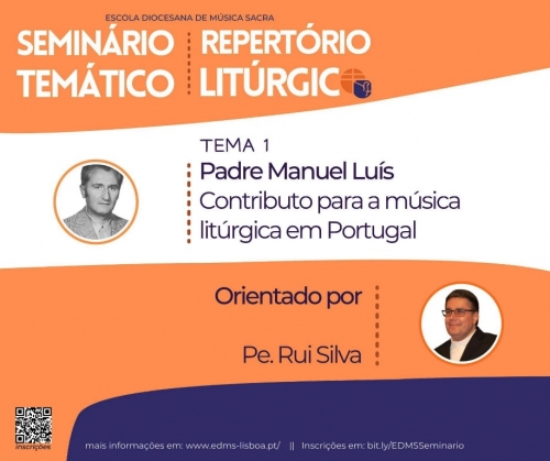 A Escola Diocesana de Música Sacra (EDMS) de Lisboa está a organizar um Seminário Temático de Repertório Litúrgico, que vai decorrer a partir de 3 de novembro. O primeiro módulo é sobre ‘Padre Manuel Luís - Contributo para a música litúrgica em Portugal’ e vai ser orientado pelo padre Rui Silva. Esta iniciativa da EDMS é aberta a todos os interessados, sendo que as aulas teóricas, com a duração de uma hora, decorrem online, em direto, sendo gravadas e ficando disponíveis por um período de 24 horas. As aulas práticas, de quatro horas, decorrem na Escola de Música de Nossa Senhora do Cabo, em Linda-a-Velha.