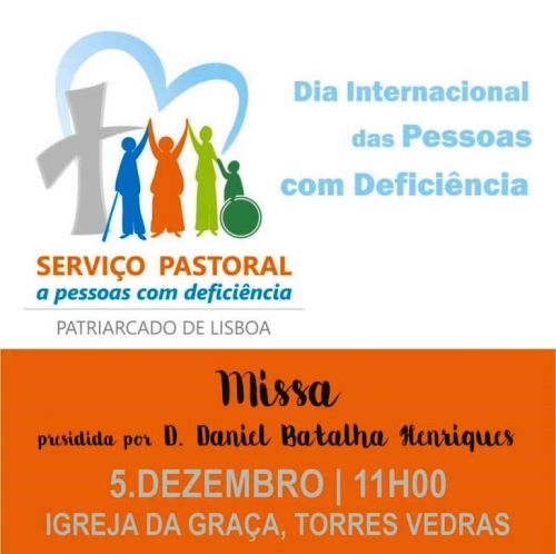 O Serviço Pastoral a Pessoas com Deficiência do Patriarcado de Lisboa vai assinalar o Dia Internacional da Pessoa com Deficiência (3 de dezembro) com uma Missa, no dia 5 de dezembro, Domingo, às 11h00, na Igreja da Graça, em Torres Vedras. “É uma forma de demonstrar que a Igreja é uma casa comum, de todos, e como forma de ir às periferias, como tem recordado o Papa Francisco”, salienta a organização. A celebração é presidida por D. Daniel Henriques, Bispo Auxiliar de Lisboa, e vai ser transmitida, em direto, pela TVI.