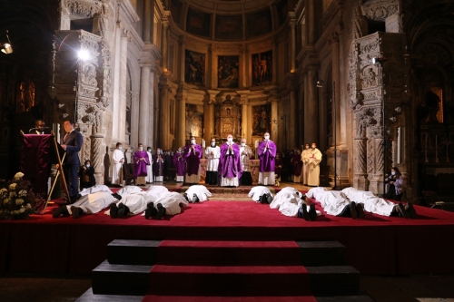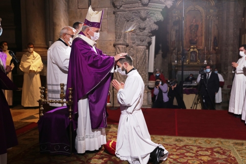 Nesta celebração foram ordenados diácono, com vista ao sacerdócio, sete alunos do Seminário Maior de Cristo Rei dos Olivais (Afonso Sousa, Diogo Tomás, Fábio Alexandre, Lourenço Lino e Pedro Sousa, de paróquias do Patriarcado de Lisboa; e ainda Ben Maliekal, da Diocese de Cochim, e Sujith Jayadevan, da Diocese de Trivandrum, ambas da Índia) e um aluno do Seminário ‘Redemptoris Mater’, em Caneças (Ángel Azcurra, da Argentina). Além destes oito candidatos da diocese, foram também ordenados diácono seis candidatos de congregações religiosas, nomeadamente três da Ordem Franciscana (Márcio Carreira, Paulo Jorge Faria e Sérgio Pinheiro), dois da Congregação dos Missionários do Verbo Divino (Emmanuel Danso Abeam e Fabian Cofie) e um dos Missionários da Consolata (Augusto Faustino). A todos eles, D. Manuel Clemente acentuou a importância da atitude de serviço a que são chamados no ministério diaconal. “Caríssimos, a isso vos conduzirá a graça que ides receber, sem esquecer que graças são encargos, pois não as recebemos para ficarem em nós, mas para com elas servirmos os outros. Neste momento tão belo e celebrativo tudo isto vos parecerá claro e conclusivo. Mas, para que assim continue a ser e o Advento de Cristo vos determine sempre, não esqueçais a advertência do Evangelho de há pouco: «Vigiai e orai em todo o tempo, para terdes a força de vos livrar de tudo o que vai acontecer e poderdes estar firmes na presença do Filho do homem». Convosco e por vós rezaremos também nós todos!”, assegurou o Cardeal-Patriarca, dirigindo-se de forma particular aos ordinandos.