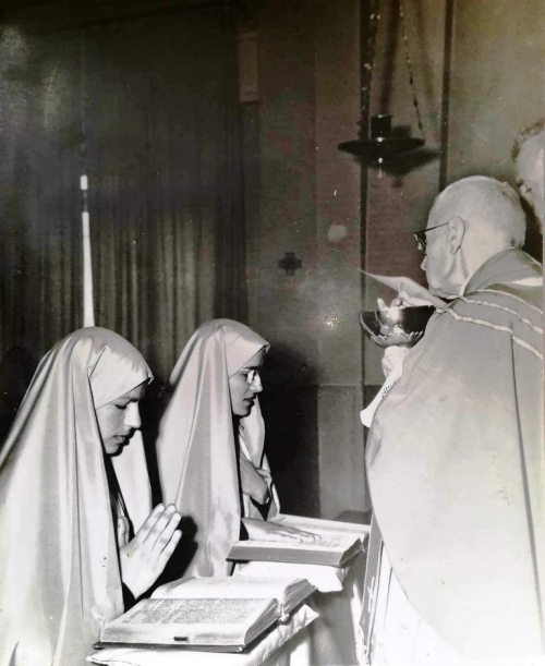 Foto: A irmã Maria Joana Gonçalves (à esq.) professou os primeiros votos em 1964, em Roma, numa celebração presidida pelo padre Tiago Alberione