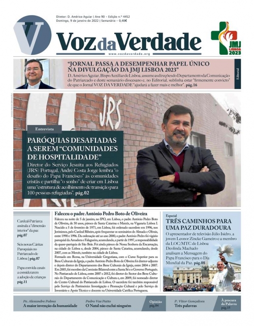 Por fim, partilho o que tantos já reconhecem: vivemos um tempo único na história da nossa amada e querida Igreja de Lisboa, com a preparação da próxima Jornada Mundial da Juventude, que se aproxima cada vez mais da data da sua realização, em agosto de 2023. A minha responsabilidade na preparação e concretização deste extraordinário acontecimento passa também por aqui, isto é, a partir de hoje, o jornal Voz da Verdade passa a desempenhar um papel único na divulgação da JMJ Lisboa2023, o que exigirá naturalmente um trabalho de equipa com a Comunicação da JMJ. À Isabel Figueiredo, ao Diogo Paiva Brandão, ao Filipe Teixeira e ao Paulo Rocha a minha gratidão pela disponibilidade para este caminhar. O Papa Francisco espera de nós este movimento de saída, de irmos ao encontro de todos, de abrirmos os braços e o coração a todos e estou firmemente convicto de que a Voz da Verdade nos ajudará a fazer mais e melhor. Assim Deus nos ajude e Nossa Senhora da Visitação nos guie…