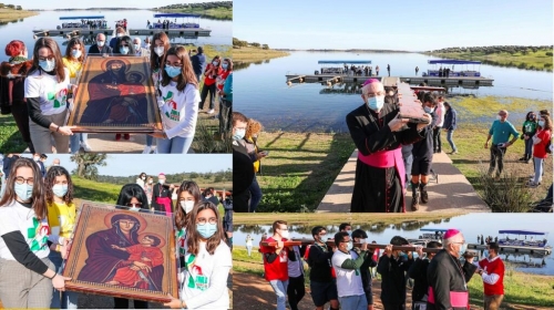 Na passagem de ano, a Cruz Peregrina e o Ícone de Nossa Senhora foram entregues pela juventude de Beja a uma delegação de jovens de Évora. Embarcaram no Cais de Alqueva e chegaram ao Cais de Campinho duas horas depois, para iniciar a peregrinação pela Arquidiocese de Évora, ao longo do mês de janeiro. “Entrego ao coração de cada jovem, aos movimentos e grupos eclesiais de jovens, o êxito pastoral desta peregrinação missionária, desta convocatória comprometedora dos Símbolos da JMJ à Arquidiocese de Évora. Que no SIM de Maria, reforcemos a nossa audácia, criatividade, empreendedorismo e fidelidade. Rezo convosco e acompanho-vos em cada momento com a disponibilidade possível. Contai comigo! Eu conto com a unidade de todos os jovens, sem exceção”, terminou o Arcebispo de Évora, D. Francisco Senra Coelho.
