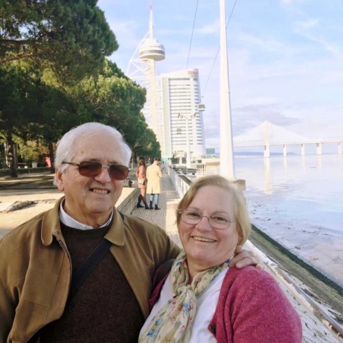 Falando um pouco de nós, somos a Celeste e o Júlio e celebrámos o nosso Matrimónio no dia 25 de agosto de 1973, quase meio século de vida em casal. Temos a graça de ter três filhos, duas noras e seis netos.