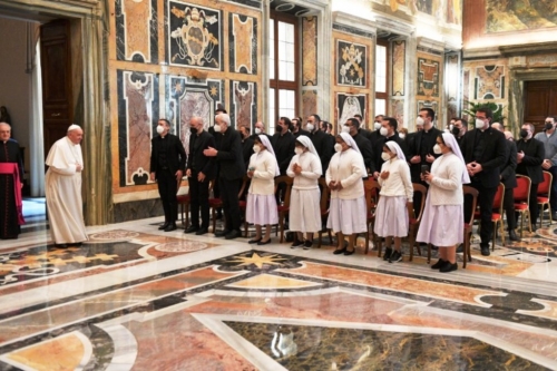 No final da audiência, o Papa defendeu que a ameaça crescente de uma invasão da Ucrânia pela Rússia deve ser resolvida através de um diálogo sério e considerou que avançar para “uma guerra é uma loucura”. “Continuamos a implorar ao Deus da paz para que as tensões e ameaças de guerra sejam superadas através de um diálogo sério e para que as conversas no formato Normandia possam contribuir para esse fim”, referiu, às centenas de fiéis reunidos na Sala Paulo VI, no Vaticano, para o habitual encontro público semanal. Entre os presentes estava Dolores Aveiro, que ofereceu ao Papa Francisco uma camisola do seu filho, Cristiano Ronaldo, capitão da seleção nacional de futebol.