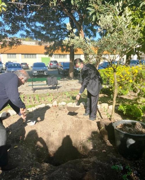 O gesto de plantação da oliveira foi observado atentamente pela gata ‘Jornada’ – como é chamada a nova residente da sede do COL da JMJ Lisboa 2023, no Beato.