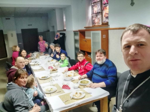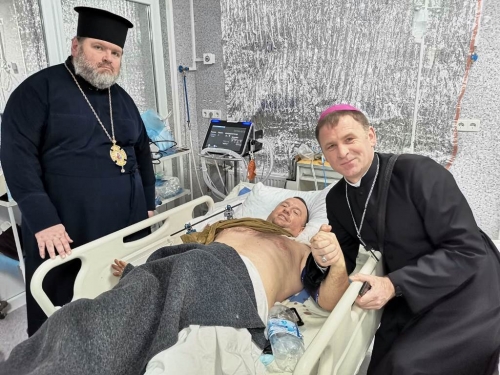 Com a cidade bombardeada, transformada quase num destroço, os hospitais passaram a ser lugares preciosos. É aí também que o Bispo passa agora o seu tempo. “Essa é agora a nossa missão”, diz. É a solidariedade a funcionar em todas as suas valências. “Visitamos os doentes regularmente. Ontem, conseguimos entregar absorventes sanitários ao hospital psiquiátrico, onde as pessoas tiveram de passar sem artigos de higiene durante vários dias. O director agradeceu-nos com lágrimas nos olhos.” A guerra está também a dividir as famílias. Os homens com menos de 60 anos estão a ser incorporados nas forças armadas. D. Pavlo Honcharuk já assistiu a muitas despedidas. Já se comoveu muitas vezes. “Visitei a estação onde assisti a cenas muito comoventes, que me tocaram profundamente. Como nenhum homem entre os 18 e os 60 anos pode deixar o país, os pais despedem-se das suas esposas e filhos, sem saber quando ou se voltarão a ver-se.”