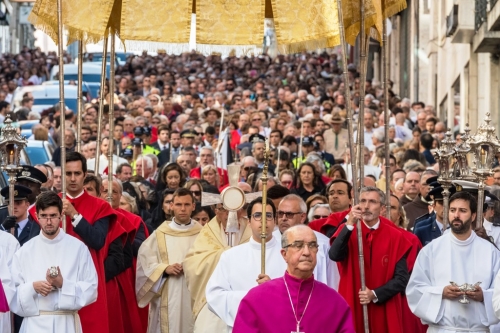 A partir das 17h00, no Largo da Sé, vai ter início a Procissão do Corpo de Deus, presidida pelo Cardeal-Patriarca de Lisboa, que passa depois pelas Rua das Pedras Negras, Rua da Madalena, Poço do Borratem, Praça Martim Moniz (contornando o Hotel Mundial), Rua da Palma, Rua Dom Duarte, Praça da Figueira, Rua da Prata, Rua da Conceição, Largo da Madalena, Rua de Santo António da Sé e termina novamente no Largo da Sé. Neste lugar, pelas 18h30, D. Manuel Clemente benze a cidade.