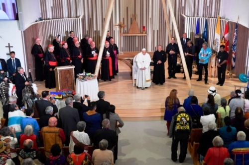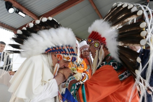 2. Ainda neste primeiro dia de visita, o Papa visitou a comunidade paroquial de Edmonton, onde se reúnem indígenas, não indígenas e imigrantes. Uma “casa para todos”, elogiou, lembrando que é assim que deve ser sempre a Igreja. Francisco foi recebido em festa, na igreja do Sagrado Coração, com cânticos tradicionais indígenas, e afirmou-se “feliz” por “rever os rostos de vários representantes indígenas” que há poucos meses o visitaram, no Vaticano, para o informar como foram oprimidos e maltratados durante décadas, e no qual concluíram que o “processo de cura” requer “gestos concretos”. “Alegra-me ver que nesta paróquia – para onde confluem pessoas das diferentes comunidades das Firts Nations, dos Métis e dos Inuit, juntamente com população não indígena da localidade e diversos irmãos e irmãs imigrantes – tal trabalho já começou. Eis uma casa para todos, aberta e inclusiva como deve ser a Igreja”, sublinhou o Papa.