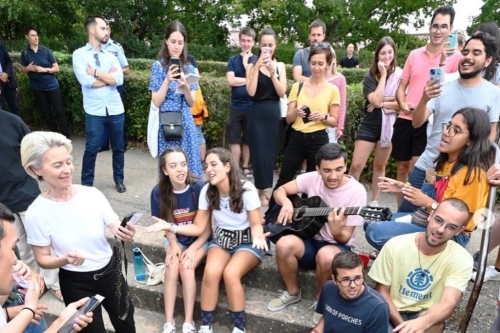 Durante a visita à comunidade ecuménica de Taizé, em Borgonha, França, Ursula von der Leyen juntou-se aos jovens portugueses para cantar o hino oficial da JMJ Lisboa 2023 ‘Há pressa no ar’. O encontro aconteceu na última semana, inserido num conjunto de reflexões dedicadas à “preservação da biodiversidade”. Na sua conta na rede social Instagram, a responsável mostrou-se “extraordinariamente agradecida” por poder trocar ideias e deixar-se “inspirar” pelos jovens.