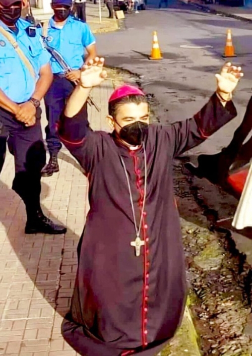 Há uma fotografia, uma das últimas antes de ter sido detido, que diz muito sobre a situação em que se encontra o Bispo de Matagalpa, na Nicarágua. Na foto, divulgada a 4 de Agosto, D. Rolando Álvarez está ajoelhado, no chão da rua, mais precisamente na berma do passeio, de mãos ao alto. Atrás de si, estão três agentes da polícia. Um deles, empunha uma metralhadora. O bispo está de mãos erguidas. Está a rezar, mas a imagem pode ser vista como alguém que acaba de receber voz de prisão, alguém que acaba de ser detido. E isso acabou mesmo por acontecer, 15 dias mais tarde. A meio da noite de 19 de Agosto, elementos da polícia, juntamente com forças paramilitares da Nicarágua, invadiram o edifício da Cúria Episcopal da Diocese de Matagalpa onde se encontrava o prelado juntamente com alguns sacerdotes, seminaristas e leigos. Todos estavam impedidos de se ausentarem do edifício. Mas aquilo que não se imaginava possível, aconteceu mesmo. A meio da noite de 19 de Agosto, uma sexta-feira, os agentes da polícia entraram à força no Arcebispado e levaram consigo o bispo e oito das pessoas que estavam com ele. Mal se soube o que estava a acontecer, os sinos das igrejas começaram a tocar e centenas de pessoas acorreram ao edifício da Cúria tentando proteger o bispo. Apesar da manifestação popular, apesar dos protestos internacionais que há muito se têm feito ouvir sobre a situação de D. Álvarez, o bispo foi levado para Manágua, onde está em prisão domiciliária na sua residência. Os outros detidos foram para um quartel da polícia.