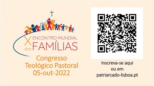 Adiámos para o dia 5-out-22 (4ª feira, feriado) o Congresso Teológico Pastoral: deixamos aqui um forte convite a que participem, inscrevendo-se através do QR Code que podem encontrar perto deste texto. Com o tema “A vocação ao amor e à santidade dos jovens e das famílias”, o Congresso vai decorrer das 10h às 19h no Centro Paroquial de Santa Joana Princesa em Lisboa e é dirigido a casais, jovens e todas as pessoas que queiram aprofundar a reflexão sobre aquilo a que Deus nos chama como Famílias.