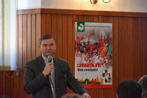 No encontro, organizado pelo Secretariado Diocesano do Ensino Religiosa (SDER) de Lisboa, estiveram presentes cerca de 150 professores, que refletiram sobre o Programa de Ação 2022/2023 ‘Levanta-te! Vem Connosco!’ e a JMJ Lisboa 2023. A reunião iniciou-se com a oração da manhã, e após a comunicação da professora Fátima Nunes, diretora, e do professor João Barros, colaborador, D. Américo Aguiar, Bispo Auxiliar de Lisboa, enfatizou a organização da JMJ como o maior encontro de jovens do mundo, e que em Portugal será o maior encontro dos últimos 20 anos. Será um convite a toda uma geração determinada a construir um mundo mais justo e solidário. Aos professores de EMRC pediu para serem bons ‘influencers’.