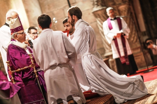 Na Igreja de Santa Maria de Belém, no Mosteiro dos Jerónimos, no Domingo I do Advento, 27 de novembro, D. Manuel Clemente ordenou três novos diáconos, todos do Patriarcado de Lisboa: Miguel Teixeira Duarte (paróquia de São Nicolau), Nuno Vicente (paróquia de São João das Lampas) e Hélio Soares (paróquia de Monte Abraão). A estes três alunos do 6.º ano do Seminário Maior de Cristo-Rei dos Olivais, o Cardeal-Patriarca lembrou que, para viver, “só Deus basta”. “Há duas maneiras de viver. Uma é a que Jesus referiu há pouco no Evangelho – e não só para o tempo de antes do dilúvio: «comiam, bebiam, casavam e davam em casamento, até ao dia em que Noé entrou na arca; e não deram por nada…». Comer, beber e casar, eram realidades naturais e positivas, como continuam a ser. O problema é fechá-las em si mesmas e não dar por nada mais, tomando-as como definitivas e bastantes, quando são realmente provisórias, por pouco ou muito que durem. Outro modo de viver é tomar essas mesmas realidades como ocasião de partilha das coisas e das próprias vidas, dando-lhes o sentido último para que apontam, como aprendizagem de Deus: Sim, como aprendizagem de Deus, que é em si mesmo uma partilha total – entre o Pai e o Filho, na unidade do Espírito - e geradora de vida eterna. Diga-se, a propósito, que a vida consagrada, ou o celibato por “amor do Reino dos Céus” (cf. Mt 19, 12) em que os ordinandos de hoje se comprometem, são sinais vivos dessa realidade definitiva, seguindo o exemplo do próprio Jesus que assim viveu e quis lembrar, para bem de todos. Porque o bem de todos é nunca esquecer que verdadeiramente “só Deus basta””, assegurou.