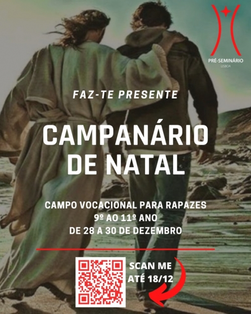 De 16 a 18 de dezembro, no Pré-Seminário de Lisboa, vai decorrer o ‘Estágio de Natal’, campo vocacional para rapazes do 6.º ao 8.º ano, com o tema ‘Fazei bem, irmãos, a vós mesmo, ajudando os pobres’. Já o ‘Campanário de Natal’, campo vocacional para rapazes do 9.º ao 11.º ano, vai ter lugar no mesmo local, mas de 28 a 30 de dezembro.