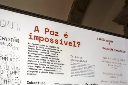 “Os visitantes podem encontrar neste espaço fotografias, recortes de imprensa, documentos arquivísticos e outros materiais e, através deles, conhecer alguns momentos e aspetos da contestação de setores católicos à ditadura e à guerra colonial, com destaque para acontecimentos como a Vigília pela Paz, organizada na Igreja de S. Domingos em 1968, e a Vigília da Capela do Rato, de 1972”, salienta um comunicado, destacando que a mostra “inclui também testemunhos de alguns dos participantes”.