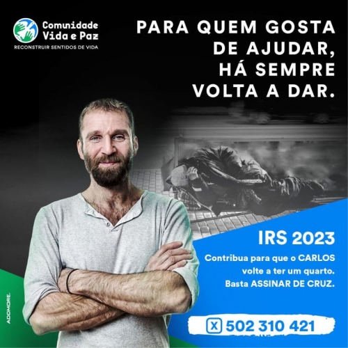 “Consignar 0,5% do IRS à Comunidade Vida e Paz não tem qualquer custo e ajuda as pessoas em situação de sem-abrigo a dar uma volta à vida. Ao preencher a Declaração de IRS basta assinar de cruz - NIF 502 310 421”, convida a instituição tutelada pelo Patriarcado de Lisboa.