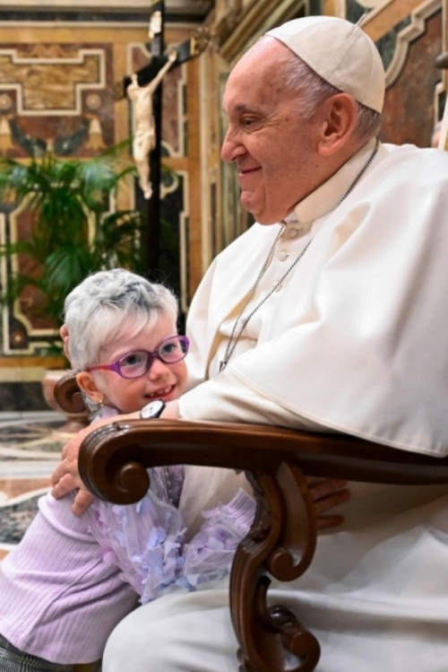 4. O Papa encontrou-se com uma representação da Federação Italiana de Doenças Raras (UNIAMO), deixando de lado o seu discurso devido à aproximação, “com toda naturalidade”, das crianças. “O verdadeiro sermão foram eles que nos deram, com as suas limitações, com as suas doenças, mas fizeram-nos entender que há sempre uma possibilidade de crescer e andar em frente”, observou Francisco, que, segundo informou a Sala de Imprensa da Santa Sé, “acolheu algumas crianças a seu lado, entregando-lhes o rosário”.