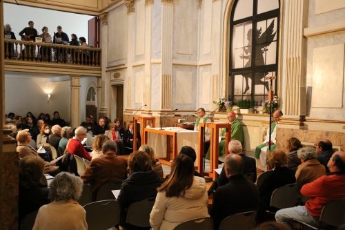Capela do antigo Palácio dos Marqueses de Praia, edificada em 1839 por iniciativa do então Marquês de Viana, a Capela de Nossa Senhora da Bonança, vulgarmente conhecida como Capela do Rato, está situada na Calçada Bento da Rocha Cabral, na cidade de Lisboa. Ecoa na memória social e política a vigília de oração pela paz que nela teve lugar, contra a ditadura e a guerra, na passagem de ano de 1972 para 1973. “É uma comunidade singular, esta da Capela do Rato, marcada por uma história de mais de 50 anos, marcada também por um presente e por novos desafios”, assinala, ao Jornal VOZ DA VERDADE, o atual capelão, padre António Martins. Deixando “uma nota sociológica”, o sacerdote sublinha que esta “não é uma comunidade territorial”. “É uma comunidade de pessoas em que algumas residem na zona da freguesia de Santo António, a maioria vem de outros lugares, de outros territórios paroquiais. São pessoas ligadas por uma afinidade, um afeto e o gosto de estar juntas, com uma liturgia simples que permite uma grande partilha de fé, de alegrias e também de solidariedade”, explica. A capela é pequena, em tamanho, o que permite “um conhecimento entre as pessoas”, mas igualmente “dinâmicas de afeto, de fraternidade, de cooperação”. “Tornam um lugar muito humano. O ambiente muito concentrado permite um discurso e uma presença muito franca, muito direta, muito despojada na relação entre quem preside e a comunidade envolvente, à volta do altar”, garante o capelão.