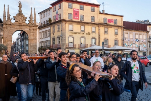 Os Símbolos da JMJ começaram a semana no coração da cidade de Braga. Na segunda-feira, dia 27 de fevereiro, os Símbolos saíram da Basílica dos Congregados, onde pernoitaram, dirigindo-se para o centro de Braga, tendo sido acolhidos com muita animação pela Comunidade Católica Shalom. Ao longo do dia, estiveram presentes alunos de diversas escolas católicas que também cantaram e oraram junto dos Símbolos.