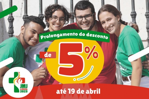 Queres ser peregrino na Jornada Mundial da Juventude (JMJ) Lisboa 2023 e ainda não te inscreveste? Não percas esta oportunidade! O prazo de aplicação dos 5% de desconto no momento da inscrição foi prolongado até ao dia 19 de abril.