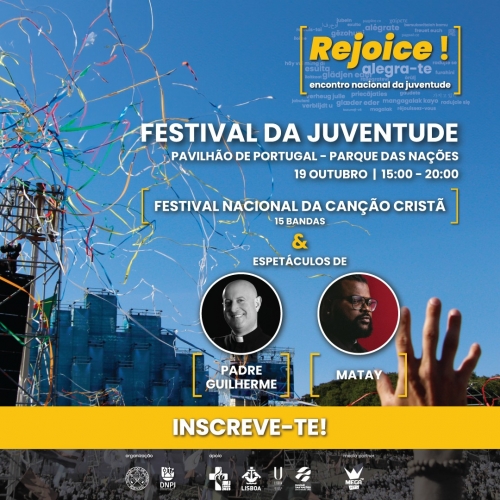 O Festival da Juventude, que vai dar início ao Rejoice! – Encontro Nacional da Juventude, no dia 19 de outubro, sábado, no Pavilhão de Portugal, no Parque das Nações, em Lisboa, vai contar com as atuações do Padre Guilherme e do cantor Matay.