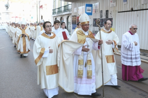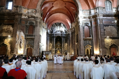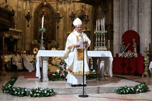 A inauguração do ano santo jubilar na diocese iniciou ao som do Hino do Jubileu 2025, ‘Peregrinos de Esperança’. Na Igreja de São Domingos, nos ritos iniciais, o Patriarca dirigiu-se depois ao povo: “Em comunhão com a Igreja universal, ao celebrarmos o amor do Pai manifesto na carne do Verbo feito homem e no sinal da cruz, âncora da salvação, abrimos solenemente o Ano Jubilar para a nossa Igreja de Lisboa. Este rito é para nós o prelúdio de uma rica experiência de graça e de misericórdia, sempre prontos a responder a todos os que nos perguntam sobre a esperança que há em nós, especialmente neste tempo de guerra e de turbulência. Cristo, nossa paz e nossa esperança, seja nosso companheiro de viagem neste ano de graça e de consolação. O Espírito Santo, que hoje em nós e connosco, inicia esta obra, a complete até ao dia de Cristo Jesus”. A celebração de Abertura do Jubileu 2025 no Patriarcado de Lisboa contou com a participação do Patriarca Emérito de Lisboa, Cardeal D. Manuel Clemente, do Núncio Apostólico em Portugal, D. Ivo Scapolo, dos Bispos Auxiliares, D. Nuno Isidro e D. Alexandre Palma, de D. Joaquim Mendes, Bispo emérito Auxiliar de Lisboa, e ainda do Bispo eleito da Guarda, D. José Miguel Pereira, e do Bispo emérito de Bragança-Miranda, D. António Montes Moreira. Depois do cântico do Aleluia e da proclamação do Evangelho, foi feita uma breve pausa de silêncio. De seguida, um leitor leu alguns parágrafos da Bula de proclamação do Jubileu Ordinário. No final da leitura, o diácono indicou o início da procissão, referindo: “Irmãos e irmãs, caminhemos em nome de Cristo: caminho que conduz ao Pai, verdade que nos liberta, vida que venceu a morte”. Teve então início a peregrinação até à Catedral, a Sé Patriarcal de Lisboa, onde foi celebrada a Missa. “Cruz de Cristo, única esperança!” Ao chegar junto da porta da Catedral, o Patriarca de Lisboa tomou a cruz que foi levada em procissão, ergueu-a e, de frente para o povo, convidou-o a venerá-la, aclamando: “Salve, cruz de Cristo, única esperança!”. Os cristãos de Lisboa responderam: “Tu és a nossa esperança, não nos confundirás para sempre”. De seguida, D. Rui Valério dirigiu-se à pia batismal, presidindo ao rito da memória do Batismo, enquanto os fiéis tomavam os seus lugares na assembleia. O Patriarca incensou depois o altar, a cruz e o presépio, e dirigiu-se para a presidência, enquanto o povo cantava o Glória. Família e esperança Na homilia da Missa de Abertura do Jubileu 2025 no Patriarcado de Lisboa, D. Rui Valério, destacou o “caminho da esperança”. “Inauguramos o Ano Jubilar, no Patriarcado de Lisboa, empreendendo o caminho da esperança, que é hoje a principal fonte da força e da coragem para trilhar estradas de paz e de justiça e construir o mundo com dedicação e entrega. E fazemo-lo na senda maravilhosa da Sagrada Família, para nos dizer que a família é o contexto preferencial para o cultivo das sementes de esperança que o Espírito de Deus lança nos nossos corações.”, apontou. Esta celebração de inauguração do ano jubilar decorreu na festa litúrgica da Sagrada Família. “Que gesto magnífico, repleto de ternura e amor, o de Maria e José de voltarem atrás à procura de Jesus: um gesto paternal e maternal vivido a dois, em comunhão de amor, mas é essencialmente um gesto de esperança. Foram peregrinos do filho, Jesus, que é a nossa esperança, mas animados por uma confiança que só Ele pode dar, a confiança da certeza do reencontro e da sua presença. Por isso, nenhuma outra realidade da sociedade, como a família, nos plasma tanto à esperança, porque é aí que a incessante procura pelo outro, nos habilita a viver na senda de uma permanente confiança da existência e da presença de cada um como ser único. A família assim construída torna-se comunidade de Fé enraizada no Pai, que nos ama a todos como filhos”, garantiu D. Rui Valério. No final da Missa, e ao som do hino jubilar, o Patriarca de Lisboa entregou um símbolo do Jubileu 2025 a alguns representantes do povo de Deus da Diocese de Lisboa.![]() |