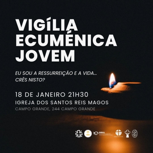 A Vigília Ecuménica Jovem, no início da Semana de Oração pela Unidade dos Cristãos, vai ter lugar na noite deste sábado, dia 18 de janeiro, às 21h30, na Igreja dos Santos Reis Magos (Igreja do Campo Grande), em Lisboa.