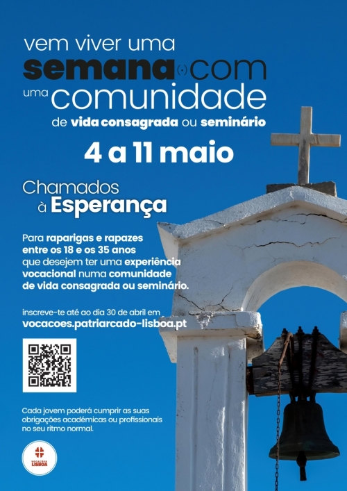 O Patriarcado de Lisboa está a desafiar os jovens entre os 18 e os 35 anos a viverem uma semana numa comunidade de vida consagrada ou num seminário, por ocasião da Semana de Oração pelas Vocações 2025, que vai decorrer de 4 a 11 de maio.