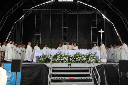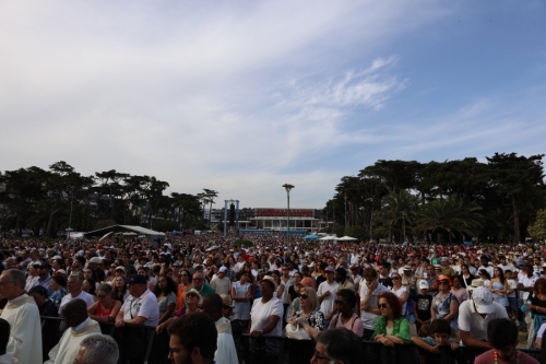 1. Desta maravilhosa paisagem de festa, por sermos a Igreja de Lisboa a celebrar em júbilo a esperança e a comunhão, erguemos os olhos do coração para, juntos, contemplar a Ascensão de Jesus ao Céu. Não é um adeus, não é uma despedida! Não é um afastamento. É, antes, um mistério de presença nova e mais próxima. Jesus não sobe ao Céu porque está cansado da terra, mas para estar connosco de um modo ainda mais íntimo e penetrante. Eleva-Se para nos elevar, vai para o Céu para abrir caminho a todos nós. É como o sol que sobe no horizonte: não se afasta para desaparecer, mas para iluminar mais ampla e profundamente a terra. Cristo ressuscitado sobe ao Céu para ser o Senhor de tudo e em tudo estar presente, em tudo fazer história. Vitória! Vitória de amor, vitória da fé, vitória da esperança. Vitória de Cristo que nos mostra o céu da eternidade, o céu da morada de Deus, mas também vitória nossa: como discípulos do Ressuscitado não oferecemos só projetos ideais de sociedade, ou coerentes caminhos éticos e morais, fazemos algo mais – nós somos artesãos de muitos céus aqui na terra: da fraternidade, da paz, da justiça, do amor.