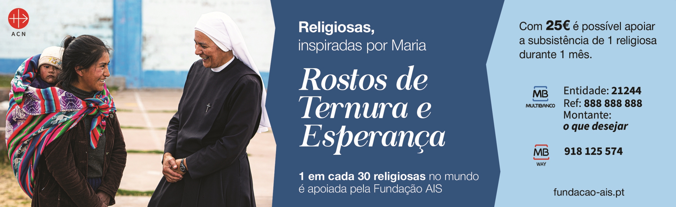 Há, actualmente, cerca de 600 mil religiosas em todo o mundo. Todas elas, nas suas múltiplas vocações, são sinal da ternura de Deus, são sinal de esperança. A Fundação AIS tem como uma das suas missões apoiar o esforço destas mulheres consagradas que estão presentes nas mais diversas periferias da humanidade, ao serviço dos mais frágeis, dos mais abandonados, dos esquecidos. As irmãs estão onde, por vezes, mais ninguém quer ir. Desde orfanatos a prisões, de hospitais a campos de deslocados, nos bairros mais humildes e pobres nos arredores das grandes cidades, ao lado das vítimas do terrorismo ou das redes criminosas… Em todos estes lugares é sempre possível encontrar alguma destas mulheres ao serviço dos mais pobres dos pobres. A Fundação AIS apoia uma em cada trinta religiosas em todo o mundo. “É extraordinário, mas insuficiente”, alerta a directora da Fundação AIS em Portugal. “Face a tanta pobreza, a tanta gente que passa por dificuldades, face a tantas pessoas de mãos estendidas, é preciso alargar esta rede de entreajuda, é preciso mobilizar mais recursos para que mais irmãs possam levar mais longe o seu trabalho insubstituível de caridade”, diz Catarina Martins de Bettencourt. “Elas estão nas periferias, nos bairros de lata, nos lugares mais miseráveis, e nós temos de acompanhar essa solicitude com o nosso apoio. É isso que peço aos portugueses, é isso que peço uma vez mais aos nossos queridos benfeitores: que nos ajudem a apoiar um número ainda maior de religiosas para que mais e mais irmãs possam ser sinal de esperança nos lugares onde há mais sofrimento”, acrescenta a responsável.