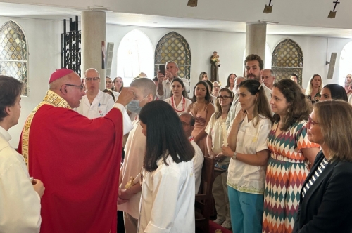 O Patriarca de Lisboa, D. Rui Valério, presidiu na manhã desta segunda-feira, 23 de junho, à celebração do sacramento do Crisma na capela do Instituto Português de Oncologia de Lisboa Francisco Gentil (IPO), tendo crismado 32 cristãos, entre profissionais de saúde e doentes da Pediatria e seus familiares.