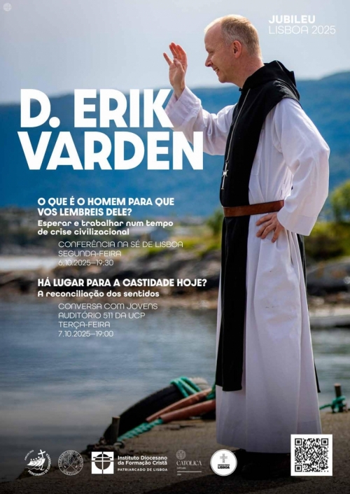No dia 6 de outubro, segunda-feira, na Sé de Lisboa, às 19h30, D. Erik Varden profere uma conferência com o tema ‘«O que é o homem para que vos lembreis dele?» (Sl 8, 6) - Esperar e trabalhar num tempo de crise civilizacional’. “Uma conferência jubilar dirigida a todos os que desejam refletir sobre o lugar do ser humano e da fé numa época de transformações profundas”, explica a organização, em comunicado.