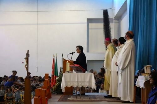 No início da celebração no pavilhão desportivo desta escola, a Superiora Provincial das Religiosas do Amor de Deus, Irmã Helena Oliveira, deixou uma mensagem de gratidão e compromisso: “É com imensa alegria que nos reunimos hoje para celebrar esta Eucaristia em ação de graças pelos 75 anos do colégio Amor de Deus. São 75 anos de história e missão educativa, guiados pelas Irmãs do Amor de Deus, cujo testemunho de fé, dedicação e entrega generosa continua a inspirar e a iluminar o caminho de todos nós”.