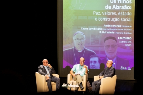 O encontro decorrido na tarde desta segunda-feira, dia 6 de outubro, foi promovido pela disciplina de Educação Moral e Religiosa Católica (EMRC) deste colégio e contou também com a participação do Xeque David Munir, Imã da Mesquita Central de Lisboa, e a moderação do jornalista António Marujo. Na assistência, estiveram sobretudo alunos, mas também pais e antigos alunos. Recordando a sua experiência como capelão militar e Bispo das Forças Armadas e das Forças de Segurança, D. Rui Valério evocou cenários de guerra na Bósnia, República Centro-Africana e Roménia, sublinhando que, nesses contextos, “as pessoas, até no olhar, transmitiam medo, preocupação, desconfiança”. O Patriarca relatou depois um encontro com o Arcebispo de Bangui, capital da República Centro-Africana, que lhe contou que “desde 2013 que a vida do país parou, não se produz, não se constrói, as crianças e adolescentes não vão à escola”. O grande projeto local era “aproximar as crianças e os adolescentes da escola”, com a construção e o equipamento de salas de aula. “Estou a falar de tudo isto para introduzir ao tema da paz. O tema da paz quer salvaguardar e promover, antes de mais, a vida e a dignidade do ser humano. É por isso que as religiões estão profundamente comprometidas com a causa da paz. Porque está, toda a religião está, o cristianismo e o catolicismo estão comprometidos com a causa do ser humano e, por isso, estão comprometidos com a causa da paz. Tanto mais que, para nós, a paz é um dos bens que nós estamos conscientes de que não é fruto só do esforço humano. Eu estou convencido que se a paz tivesse que ser só fruto do esforço humano, com todas as reuniões e alianças e congressos que se fizeram, desde as Nações Unidas, o que acontece em cada país, essa paz já cá estava e ela não está. Portanto, nós olhamos para a paz como se fosse uma parcela – e vocês compreendem a linguagem –, uma parcela de Céu a acontecer aqui na terra. É um pedacinho de Céu, lá onde existe a paz”, afirmou. Justiça: condição essencial para a paz Para D. Rui Valério, a paz “não é apenas um dom, mas também uma construção” que implica condições concretas. “Só quando há, e onde há, justiça, há paz”, sublinhou, recordando que a paz imposta após a Primeira Guerra Mundial teve “uma duração escassa” por não respeitar a dignidade e a justiça. Referindo-se à situação no Médio Oriente, o Patriarca partilhou uma imagem usada por um Bispo Auxiliar do Patriarca Latino de Jerusalém, D. Bruno Varriano, com quem se encontrou recentemente em Lisboa: “Nós procuramos ter uma mão sobre o ombro de cada uma das partes beligerantes. Assim, a paz é possível. Não é possível se, por exemplo, tu estiveres com o pé em cima de um deles. Aí não constróis paz”. Religião como horizonte de fraternidade Neste encontro com os jovens estudantes, D. Rui Valério destacou ainda que todas as religiões propõem um horizonte mais amplo para a sociedade. “A paz oferece ao ser humano a possibilidade de ver mais longe, mais além”, afirmou, lembrando como, em contextos de guerra, as pessoas tendem a tornar-se “profundamente individualistas e egoístas”. Citando um “famoso mestre oriental”, concluiu: “Começa a ser dia, começa a ser luz, quando um ser humano olhando para o outro é capaz de reconhecer nele um irmão. Até que isso não aconteça, nós permanecemos nas trevas”. “A conversão é fundamental” Questionado sobre o papel dos crentes na construção de um mundo sem armas, o Patriarca de Lisboa sublinhou a importância da transformação interior: “Tudo tem que partir dentro de cada um de nós. Nós temos que resolver a nossa interioridade, os bloqueios que nós próprios construímos. Até que nós nos estejamos resolvidos a esse nível, continuamos a levantar muros e não somos capazes de construir pontes”. “Eu sei que é uma palavra que não é nada da política, mas a conversão, aqui, é fundamental. E se nós, na humildade, não a acatarmos, é muito difícil estabelecer esta ligação e estas pontes com os outros”, rematou, no final da mesa-redonda ‘Os filhos de Abraão: Paz, valores, estado e construção social’, realizada no Colégio Pedro Arrupe, em Lisboa.![]() |