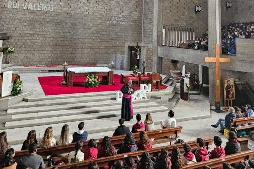 A Sé Patriarcal de Lisboa acolheu a Missa da Jornada Diocesana da Juventude (JDJ) 2025, presidida pelo Patriarca de Lisboa, D. Rui Valério. Quase três milhares de jovens de toda a diocese marcaram presença nesta celebração que assinalou também a Solenidade de Cristo Rei. Na homilia da celebração, o Patriarca refletiu sobre o significado da realeza de Cristo, convidando os jovens a olhar para Jesus de forma nova. “Caros amigos, nós hoje estamos a celebrar a Solenidade de Cristo Rei. Rei, uma palavra que automaticamente nos traz à mente um trono majestoso, uma coroa de ouro, poder, poder absoluto. Mas quando nós voltamos o nosso olhar e o nosso coração para Aquele que é o nosso Rei, que é Jesus, então nós descobrimos que a sua coroa é de espinhos, que o seu trono é a Cruz e que a sua realeza é conquistar-nos não com a força, mas com o amor”, afirmou. D. Rui Valério sublinhou que a lógica do mundo – centrada na conquista e no desempenho – contrasta com o modo como Jesus atua: “O mundo quer-nos convencer de que a felicidade é uma questão de conquista com o nosso esforço… Olhemos, pois, fixemos o nosso olhar n’Aquele que hoje se ergue no madeiro da Cruz e que nos diz: «Eu, Rei, porque te quero conquistar»”. Jesus propõe-se, não se impõe Numa Sé repleta de jovens, o Patriarca insistiu no carácter próximo e companheiro de Jesus. “Ele quer-nos conquistar não aproveitando-se dos nossos medos (…) mas pela via do amor”. E acrescentou que a presença constante de Cristo se torna o argumento mais forte para deixar-se conquistar por Ele: “Não há um instante da nossa vida em que Ele não esteja connosco. E isso conquista-nos. O ser humano é conquistado por essa presença de quem ele sabe que o ama”. Contrariando qualquer visão autoritária do poder de Cristo, D. Rui Valério sublinhou que a realeza de Jesus respeita sempre a liberdade humana. “É Rei não porque invade arbitrariamente o território da nossa existência (…) Jesus propõe-se, mas não se impõe”, garantiu. A partir desta certeza, lançou perguntas aos jovens: “E eu deixo-me conquistar por Jesus? Que espaço, que abertura, que lugar é que Jesus tem na minha vida e na elaboração dessa decisão?”. Neste sentido, o Patriarca destacou ainda que permitir que Deus conduza a vida não limita, mas liberta. “Quando nós queremos o que Deus quer, nós temos aquilo que queremos”, frisou. Acreditar mais no amor do que na força Na Missa concelebrada por D. Nuno Isidro e por D. Alexandre Palma, Bispos Auxiliares de Lisboa, e ainda por diversos sacerdotes, D. Rui Valério salientou depois que reconhecer Jesus como Rei traduz-se num estilo de vida ancorado na bondade e na ternura: “Significa que nós acreditamos mais no amor do que na força, mais na bondade do que na violência, mais na liberdade do que na obrigatoriedade, mais na ternura do que na agressividade”. No final da homilia, o Patriarca de Lisboa deixou um apelo forte aos jovens participantes da JDJ 2025. “Este é o grande desígnio que hoje Ele tem para ti: que lhe permitas que Ele tome posse do teu coração, que Ele contigo tome posse desse leme para conduzir a tua existência. Não queiras fazê-lo sozinho. A vida apresenta-nos desafios demasiadamente grandes para serem enfrentados só por nós. Ele quer estar contigo, mas quer estar contigo se te conquistou e conquista-te para que tu te enamores d’Ele”, sublinhou. D. Rui Valério concluiu com uma mensagem de esperança: “Que no final desta nossa Jornada Diocesana da Juventude levemos para as nossas casas a certeza, esta certeza que é quase um dado de fé: Jesus quer-se enamorar de mim, está enamorado de mim. Que eu me deixe enamorar por ele, me deixe conquistar por Ele. Isso significa que verdadeiramente reconheci que Jesus é Rei.” Mancha de jovens católicos enche centro da cidade O dia da Jornada Diocesana da Juventude 2025, na cidade de Lisboa, teve como ponto de encontro a Igreja do Sagrado Coração de Jesus. Manhã cedo, pelas 9h00, o acolhimento e a animação estiveram a cargo da Comunidade Católica Shalom. Na presença de muitas centenas de jovens, a oração inicial foi então presidida pelo Patriarca de Lisboa, D. Rui Valério. Seguiu-se o momento ‘Recordar o Jubileu dos Jovens em Roma’, em que foi lembrada a peregrinação que cerca de 1600 jovens do Patriarcado de Lisboa fizeram, entre a madrugada de dia 26 de julho e até dia 5 de agosto, para participarem no Jubileu dos Jovens, por convite do Papa Francisco, junto ao Papa Leão XIV, no Vaticano. A comitiva, composta por 31 autocarros, foi sempre acompanhada pelo Patriarca de Lisboa. Pelas 11h00 tiveram início 11 workshops sobre a amizade, em 11 lugares diferentes de Lisboa: a própria Igreja do Sagrado Coração de Jesus, a capela do Hospital dos Capuchos, a Igreja de Nossa Senhora dos Anjos, a Capela de Nossa Senhora da Carreira, a Igreja de São José dos Carpinteiros, a Igreja de São José da Anunciada, a Igreja do Rato, a Igreja de São Mamede, o 100 Luiza Andaluz e o Convento dos Cardaes. Foram muitos os oradores e as instituições convidadas a dar testemunho nesta manhã de JDJ 2025. Desde logo a Pastoral das Vocações de Lisboa e o Pré-Seminário, que abordaram ‘A amizade com Jesus. Como crescer na amizade com Jesus?’ ou a Cáritas Diocesana de Lisboa e o CEPAC - Centro Padre Alves Correia que falaram sobre ‘O acolhimento como sinal de amizade. Como posso acolher os migrantes e amar como Jesus?’. Já o leigo João Fialho refletiu sobre ‘Os amigos de Jesus. Na Bíblia, quem são os amigos de Jesus?’ e Afonso Virtuoso falou de ‘Construir a amizade social. Qual é o nosso papel na construção de um mundo mais justo?’. O Padre Ricardo Figueiredo apresentou ‘Acutis e Frassati: 2 amigos de Jesus. O que nos ensinam estes dois santos sobre a amizade?’, o Padre Nelson Faria, SJ falou do ‘Scroll infinito e amizade. Como lançar raízes num temp