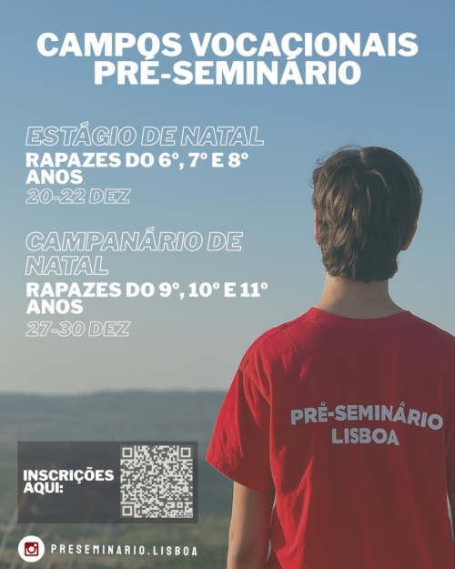 Tal como em anos anteriores, vão ter lugar nas próximas semanas diversas atividades vocacionais para raparigas (Luzeiros) e para rapazes (retiro vocacional de Advento para rapazes, Estágio e Campanário), preparadas pelo Setor de Animação Vocacional (SAV), pelo Pré-Seminário de Lisboa e pelo Seminário de São José de Caparide. “No próximo mês de dezembro iremos ter várias propostas de experiência vocacional que gostaríamos de partilhar convosco. O Senhor continua a chamar, mas também nos convoca para que possamos chamar e convidar em Seu nome pessoas concretas que possam iniciar um percurso de discernimento e de crescimento da vida cristã. Encorajamos-vos por isso, a que possam fazer chegar estes convites de forma pessoal àqueles rapazes e raparigas que acompanham nas vossas comunidades e a quem estas propostas poderiam ser uma oferta do Espírito para o seu percurso”, refere uma carta do diretor do SAV, Padre Bernardo Trocado, enviada aos “reverendos padres, queridos catequistas e animadores, queridas famílias”. O sacerdote lembra ainda que cada paróquia “pode colaborar ativamente” com a pastoral vocacional “ajudando a suportar financeiramente estas atividades”. “Acreditamos que mesmo que não tenha jovens ou adolescentes da sua paróquia a participar, as ofertas vocacionais geram um benefício vocacional para toda a Diocese”, salienta a missiva. Luzeiros Os Luzeiros são os campos vocacionais para raparigas do 7.º ao 12.º ano e vão decorrer de 20 a 23 de dezembro, na Quinta das Tílias, em Belas. “Convidamos-te a participar no Luzeiro de Natal, um encontro vocacional para raparigas da tua idade, dos 12 aos 17 anos, onde faremos a experiência de nos encontrarmos com um Deus que nos ama muito e que nos quer ajudar a encontrar o caminho da nossa vida. Se gostavas de aprender a ouvir a voz de Deus na tua vida concreta então aproveita esta oportunidade. No Luzeiro de Natal poderás aprender a dar passos na descoberta da tua vocação”, refere o convite. As inscrições estão abertas até ao dia 13 de dezembro (966961693 ou vocacoesxpto@gmail.com). Campos vocacionais para rapazes O Estágio Natal é dirigido a rapazes do 6.º ao 8.º ano e vai decorrer de 20 a 22 de dezembro, no Seminário de Penafirme. Já o Campanário Natal é destinado a jovens do 9.º ao 11.º ano e vai ter lugar de 27 a 30 de dezembro, no mesmo seminário. As inscrições são feitas através do Padre Pedro Sousa (919029779, preseminario@patriarcado-lisboa.pt ou https://linktr.ee/preseminario.lisboa) Já o retiro vocacional para rapazes vai decorrer de 12 a 14 de dezembro, no Seminário de Caparide. Inscrições junto do Padre Rui de Jesus (967003249 ou https://linktr.ee/preseminario.lisboa). Informações: https://vocacoes.patriarcado-lisboa.pt![]() |