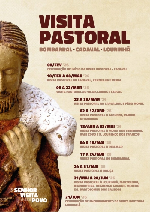 Após a Visita Pastoral à Vigararia de Oeiras, que decorreu de 17 de novembro a 1 de fevereiro, a Vigararia da Lourinhã vai receber, ao longo de quatro meses e meio, o Patriarca D. Rui Valério e os seus três Bispos Auxiliares, que vão conhecer de perto a realidade eclesial e social destas comunidades. A abertura da Visita Pastoral à Vigararia da Lourinhã vai ter lugar na tarde do próximo Domingo, dia 8 de fevereiro, a partir das 16h00, com o encontro e Missa, no Pavilhão Municipal João Francisco Ribeiro Corrêa, no Cadaval. A Vigararia da Lourinhã, que tem como vigário o Padre Ricardo Jacinto, integra, na sua área geográfica, três concelhos: Bombarral, Cadaval e Lourinhã. Ao longo da Visita Pastoral, vão ter lugar três encontros com os autarcas, um por cada município, em datas a anunciar. Em termos vicariais, vai ainda decorrer um encontro para as empresas, que está a ser organizado em parceria com a ACEGE | Associação Cristã de Empresários e Gestores e que vai ter lugar em dia e local a divulgar posteriormente. Em termos paroquiais, de 18 de fevereiro a 8 de março, realiza-se a Visita Pastoral ao Cadaval, Vermelha e Peral, de 9 a 22 de março, a Visita Pastoral decorre no Vilar, Lamas e Cercal, e de 23 a 29 de março, a Visita Pastoral acontece no Carvalhal e Pêro Moniz. De 2 a 12 de abril, a Visita Pastoral passa por Alguber, Painho e Figueiros, e de 18 de abril a 3 de maio, a Visita Pastoral tem lugar na Moita dos Ferreiros, Vale Côvo e São Lourenço dos Francos. De 4 a 10 de maio, a Visita Pastoral realiza-se em Ribamar, de 17 a 24 de maio, decorre a Visita Pastoral ao Bombarral, e de 24 a 31 de maio, a Visita Pastoral acontece na Roliça. Por fim, de 31 de maio a 20 de junho, a Visita Pastoral abrange a Lourinhã, Marteleira, Marquiteira, Reguengo Grande, Moledo e São Bartolomeu dos Galegos. A celebração de encerramento da Visita Pastoral à Vigararia da Lourinhã vai ter lugar no dia 21 de junho, Domingo, na Lourinhã. Patriarca de Lisboa convida O Patriarca de Lisboa convida as comunidades cristãs das 23 paróquias que compõem a Vigararia da Lourinhã à participação na Visita Pastoral, que vai decorrer de 8 de fevereiro a 21 de junho. “Caros amigos, saúdo-vos. A partir do dia 8 de fevereiro, vamos iniciar a Visita Pastoral à Vigararia da Lourinhã. Uma visita pastoral é sempre um momento de presença dos pastores nas comunidades cristãs, é sempre um momento de proximidade, é sempre uma ocasião de reafirmar aquele espírito sinodal do caminhar, do trabalhar, do refletir juntos. De facto, estar presente na vida de cada uma das pessoas para apreender e para sentir as suas dificuldades, os seus desafios. Naturalmente que esta visita pastoral tem, digamos, dois tons que, de certa forma, irão estar presentes. Por um lado, estamos ainda no rescaldo do Jubileu da Esperança. E por isso, ao empreender esta visita, esta presença, esta passagem, não podemos não cultivar essa força interior que vem de Jesus Cristo ressuscitado para que as adversidades da vida sejam superadas. Mas por outro lado, esta visita pastoral acontece poucos dias após a tragédia que se abateu nalgumas zonas do território nacional com a tempestade que destruiu, que foi avassaladora. É uma ocasião, então, de reafirmarmos que é em comunidade, é no espírito de comunhão e de solidariedade, que todas as dificuldades são resolvidas, que todos os problemas são superados, que nós construímos o Reino de Deus na história. Uma santa visita pastoral. Grande disponibilidade, viva a proximidade”, convidou D. Rui Valério.![]() |