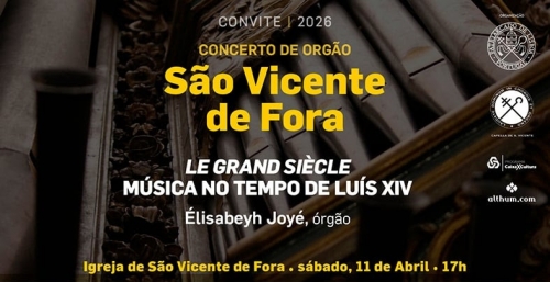 A Igreja de São Vicente de Fora, em Lisboa, recebe neste sábado, dia 11 de abril, às 17h00, um concerto de órgão de entrada livre intitulado ‘Le Grand Siècle – Música no tempo de Luís XIV’. A iniciativa é promovida pelo Patriarcado de Lisboa, pela Capella de S. Vicente e pela editora Althum.com.