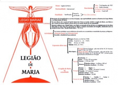 A Legião de Maria é um movimento internacional de leigos ao serviço da Igreja para a evangelização do mundo, que, “desde os seus primeiros momentos, esteve nas mãos da Santíssima Virgem” (Frank Duff, fundador).