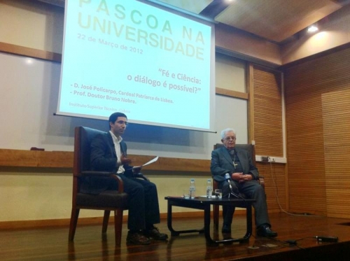 No Instituto Superior Técnico, num debate com Bruno Nobre integrado na ‘Páscoa na Universidade 2012’, o Patriarca de Lisboa sustentou: “Há verificações que não se podem fazer nos laboratórios. O impacto de uma experiência religiosa de contacto com Deus não se pode fazer nos laboratórios e não se pode negar”. Nesta iniciativa do CeUC – Pastoral Universitária de Lisboa, D. José Policarpo diferenciou depois: “É uma página grandiosa da história da humanidade das diversas religiões a grandeza das experiências místicas o contacto do ser humano com o transcendente, mas isso não dá para laboratório”. Se o cientista “tiver uma abertura humana à beleza e à felicidade total que não se esgota na verdade de um laboratório ou de uma equação matemática, ele pode equacionar as duas coisas”, garantiu. Após o debate, os jovens universitários foram para a igreja de São João de Deus, onde foi celebrada a Eucaristia. Feriados Ainda durante o debate ‘Fé e Ciência: o diálogo é possível?’, o Cardeal-Patriarca de Lisboa sublinhou que a importância dos feriados religiosos decorre da sua importância histórica e tradição no país. “Religioso ou não religioso, o problema é saber se estas celebrações correspondem a um dado da nossa História, da nossa comunidade cultural, da nossa tradição. E se perdermos isto, não há verdade que salve”, referiu D. José Policarpo.![]() |