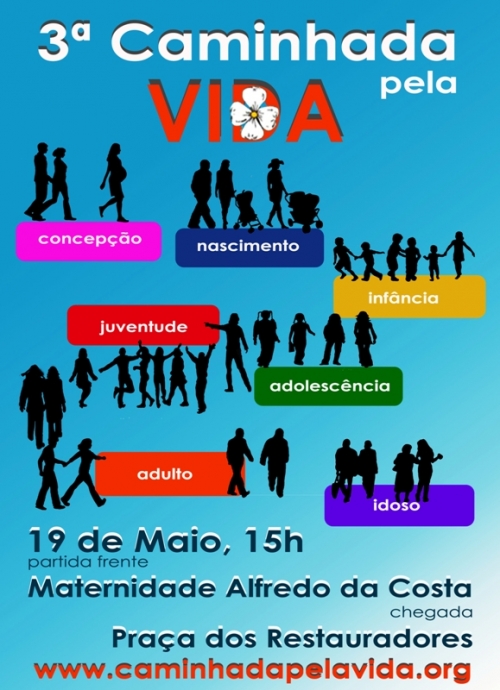 Responsáveis e funcionários de 40 instituições de solidariedade social caminharam pela vida, em Lisboa. A 3ª Caminhada pela Vida decorreu no passado dia 19 de Maio, desde a Maternidade Alfredo da Costa até à Praça dos Restauradores, e juntou cerca de 500 pessoas.