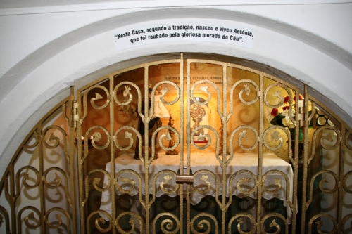 No interior, na descida para a cripta onde está uma relíquia do santo português, um painel de azulejos assinala a visita do Papa João Paulo II. “No dia 12 de Maio de 1982, o Santo Padre João Paulo II, por sua iniciativa e devoção, visitou e orou neste lugar onde nasceu Santo António”, recorda uma placa.