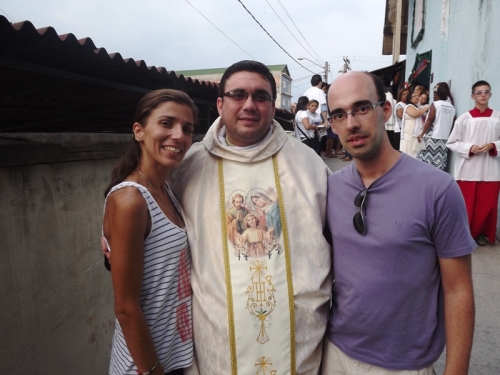 Ali perto, e depois de ficarmos surpreendidos com o acolhimento, ficámos também sem palavras ao ver a espantosa recepção que tivemos na casa paroquial. Esperava-nos, de braços abertos, o Pe. João Silveira da Silva, um homem de uma santidade digna de ser testemunhada e com uma entrega muito grande à conversão dos jovens. A sua ascendência portuguesa aproximou-nos ainda mais enquanto conversávamos. Fundador de uma comunidade católica que ali está implementada, conta-nos, com muito orgulho, qual o carisma da sua comunidade e fala-nos com maior confiança dos seus santos baluartes, entre os quais São Bento, lembrado também numa medalha que nos foi oferecida. Os testemunhos das conversas que escutei durante o almoço são relatos impressionantes de como pelas ruas por onde passámos caminham lado a lado a miséria, a guerra e o medo mas é a alegria o sentimento mais duradouro. São estes exemplos de entrega total e com apenas uma preocupação – a de fazer a vontade de Deus, que me deixam reconhecer ali a presença forte do Espírito Santo quase de forma ‘palpável’. É sobretudo aos mais pobres que o Senhor se manifesta e disso posso dar testemunho.