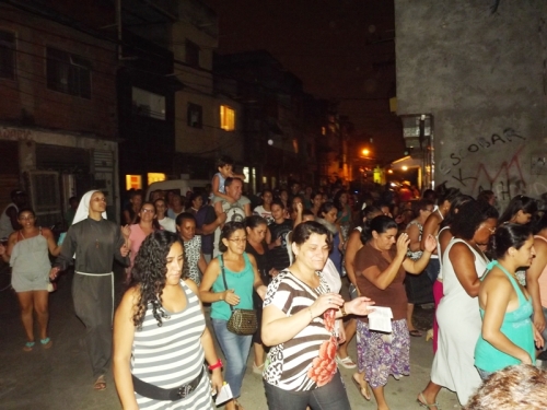 A visita continua por entre as ruas do complexo de favelas que alberga mais de cento e trinta mil pessoas, cuja proveniência é de difícil identificação. Paramos para conversar com alguns responsáveis da pastoral juvenil local e para dar um testemunho de como os jovens na Europa olham para esta Jornada Mundial da Juventude (JMJ), mostrando que existem milhares de jovens que partilham a mesma alegria da fé e depositam todos os esforços para se encontrarem no Rio em Julho. Dar testemunho da universalidade desta JMJ é essencial para os jovens brasileiros que se preparam para acolher quem chega de fora.