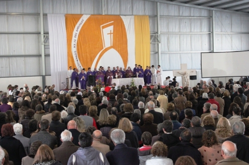 O encerramento da Vista Pastoral à Vigararia de Caldas – Peniche ficou ainda marcado pela Eucaristia no pavilhão do Arneirense. A presidir à celebração estiveram os Bispos Auxiliares, em representação do Cardeal-Patriarca de Lisboa, que presente em Roma para o Conclave. Na sua homilia, D. Nuno Brás apelou para a necessidade de promover gestos de entreajuda entre as comunidades paroquiais da vigararia. O Bispo Auxiliar que tem a responsabilidade de acompanhar esta zona pastoral no Oeste da Diocese de Lisboa apontou que a visita pastoral fez “notar o desânimo em algumas comunidades”, bem como “a falta de ardor evangélico” e “a confiança quase exclusiva nas próprias forças”. Nesse sentido, deixou às centenas de fiéis presentes na celebração realizada nas Caldas da Rainha, o apelo para que “como vigararia, formada por comunidades vivas, se encontrem modos de entreajuda concreta, que devolvam àquelas comunidades o entusiasmo do Evangelho e a ousadia da caridade”.