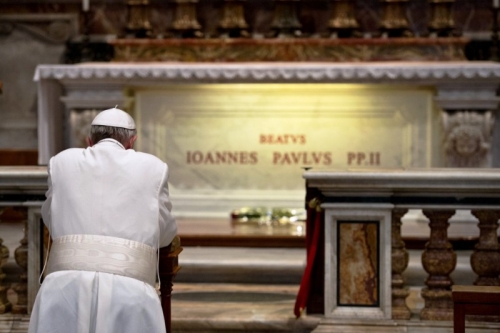 4. O Papa Francisco rezou junto ao túmulo de João Paulo II. Foi no passado dia 2 de abril, 8º aniversário da sua morte, num gesto que pretendeu homenagear o Papa polaco. Francisco permaneceu ajoelhado e rezou perante o túmulo de João Paulo II, na Capela de San Sebastián, além de ter também visitado, mais brevemente, os túmulos dos Papas João XXIII e Pio X. “Assim como as visita de ontem ao túmulo de São Pedro e às criptas da Basílica, as de hoje expressam a profunda continuidade espiritual do ministério petrino dos Papas, que Francisco vive e sente intensamente”, afirmou uma nota da Santa Sé.
