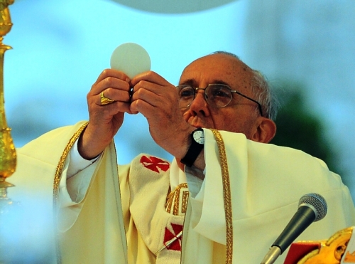 3. O Papa Francisco presidiu na tarde de Domingo, na Basílica de São Pedro, à Adoração Eucarística simultânea a nível mundial. O evento, inserido no âmbito do Ano da Fé convocado por Bento XVI em outubro passado, foi realizado no dia em que é festejado o Corpo de Deus. Milhares de fiéis presentes em Roma estiveram unidos em adoração e em sintonia com fiéis de todo o mundo. O Papa Francisco havia indicado duas intenções para este momento de oração: “Pela Igreja espalhada em todo o mundo e hoje em sinal de unidade, recolhida na Adoração da Santíssima Eucaristia”; e “por todos aqueles que nas diversas partes do mundo vivem no sofrimento devido às novas formas de escravidão e são vítimas de guerras, do tráfico de pessoas, do narcotráfico e do trabalho escravo; pelas crianças e mulheres que são submetidas a todo o tipo de violência”.