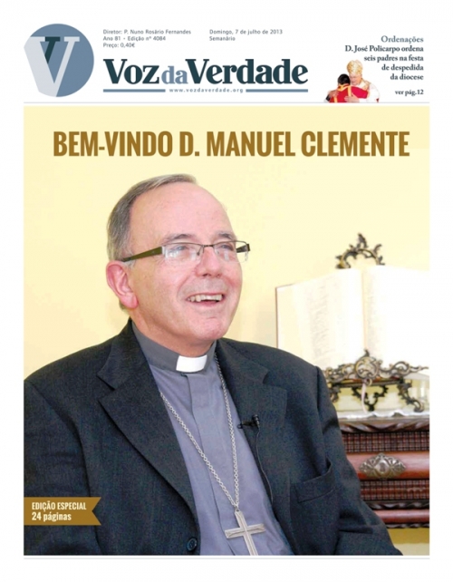 Nesta semana, e pelo momento que vivemos, estamos satisfeitos por poder presentear os nossos leitores com esta primeira grande entrevista do novo Patriarca de Lisboa ao Jornal VOZ DA VERDADE. Uma entrevista que nos faz pensar, rezar e valorizar o papel de cada um no seio da Igreja e da sociedade. A D. Manuel Clemente deixamos a nossa saudação e felicitação por esta missão que agora lhe é confiada.
