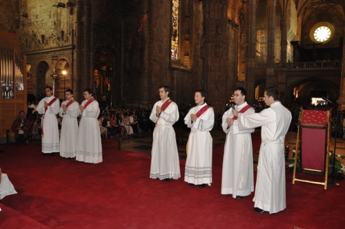 É sábado, dia 29 de junho, e o calendário religioso assinala a festa de São Pedro e São Paulo. Não são, ainda, oito horas da manhã e à porta da igreja de Santa Maria de Belém, no Mosteiro dos Jerónimos, já se encontram dezenas de pessoas a aguardar que as portas do templo se abram para entrarem e ‘correrem’ para alcançar o melhor lugar na igreja, de preferência sentado e com visibilidade para o altar. O motivo justifica-se: vão ser ordenados seis novos padres e o momento quer-se bem registado. A celebração, que em breve vai começar, requer a maior dignidade. Por isso, todos os movimentos no altar foram já ensaiados e preparados na véspera, sobretudo com os futuros sacerdotes, os diáconos que vão estar ao serviço no altar e os acólitos que provêm dos seminários da Diocese de Lisboa. Esta é uma celebração sempre marcante e “está mais voltada para o futuro do que para o passado”, salientou o Patriarca Emérito, Cardeal Policarpo que, pela última vez, presidiu à celebração de ordenações da diocese. Na homilia que proferiu, apontava que “seis novos presbíteros encarnam a esperança de futuro desta Igreja”, a Igreja que, observa, “todos amamos e que servi, de diversas formas, durante toda a minha vida”. Este foi, também, o momento para a Diocese de Lisboa agradecer o ministério episcopal exercido por D. José Policarpo, de modo especial ao longo dos 16 anos de pontificado como Patriarca, onde afirma ter procurado sempre uma “união ao Sucessor de Pedro”. “Na minha longa vida de ministério sacerdotal cultivei sempre esta união ao Sucessor de Pedro. A sua palavra ensinou-me o caminho da fé e da verdade e, por vezes, levou-me a corrigir perspectivas pessoais na compreensão da complexa realidade cristã”, assegura.